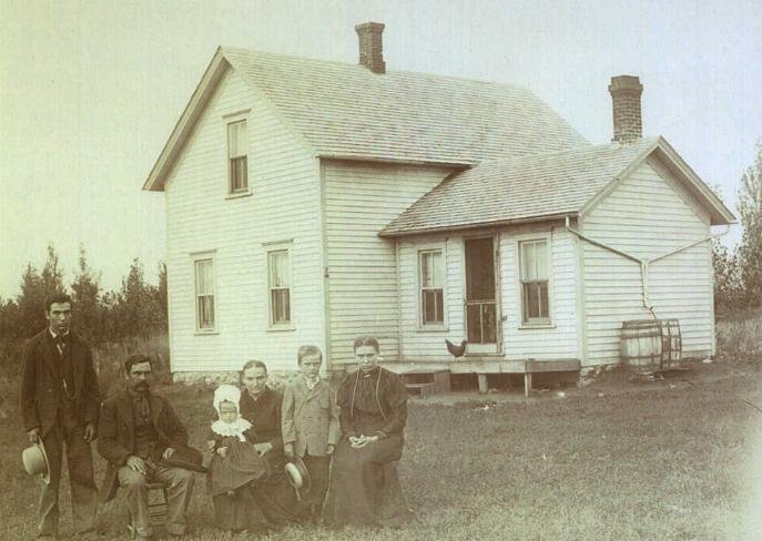 of their homestead in Alta Vista Twp., Lincoln Co., MN. From left to right